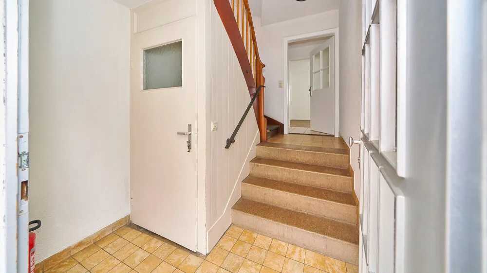 Das Zweifamilienhaus wurde 1952 erbaut, ist voll unterkellert und bietet zwei Wohneinheiten. Anfang der 2000er Jahre erfolgten Modernisierungsmaßnahmen, dennoch besteht aktuell Sanierungsbedarf.