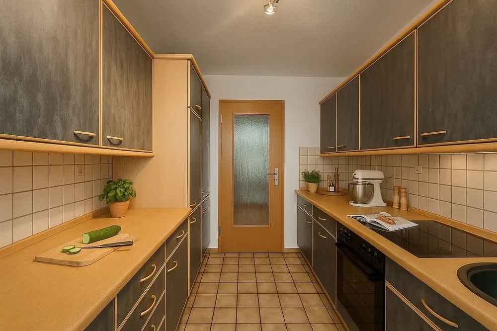 Küche mit älteren Einbaumöbeln