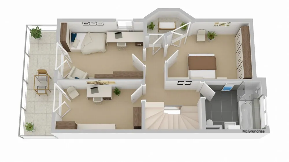 -Das zweite OG/DG beinhaltet zwei weitere Zimmer sowie einen kleinen Balkon mit schönem Ausblick ins Grüne. Das Haus bietet alle Möglichkeiten um Ihre Kinder oder Gäste und ungestörte Homeoffice Plätze unterzubringen. Auf dieser Etage finden Sie ebenso ein Badezimmer vor.