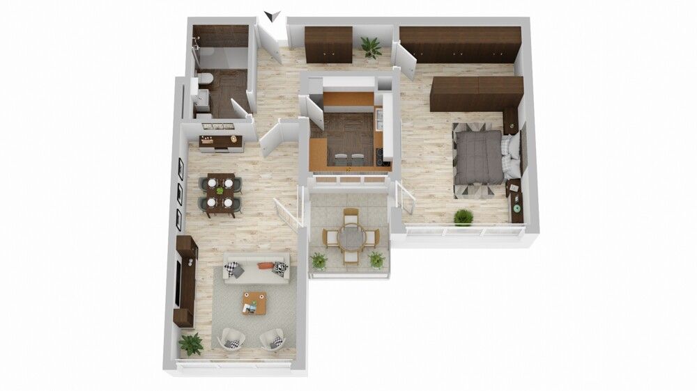 Die Wohnung verfügt über 2 Zimmer, darunter ein offener Wohn-/ Essbereich mit Zugang zum Balkon, eine Küche mit sämtlichen Geräten ausgestattet, ein großzügiges Schlafzimmer, das sich bei Bedarf mühelos in eine Schlaf- und eine Arbeitsoase unterteilen lässt und ein Badezimmer. Das modernisierte Badezimmer bietet Ihnen eine komfortable Dusche mit niedrigem Einstieg, ein WC sowie praktischen Platz für Ihre eigene Waschmaschine – alles auf einer Ebene!