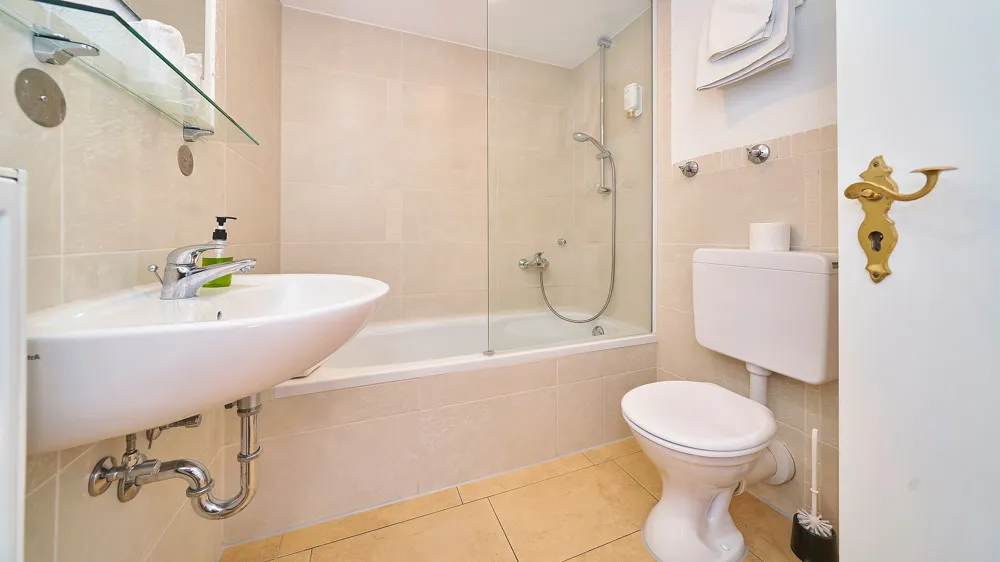 - 1 Einzel-Gästezimmer mit Badezimmer und Teppichboden