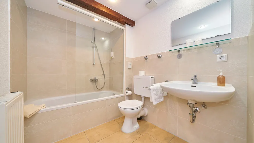 - 4 Doppel-Gästezimmer jeweils mit Badezimmer und Teppichboden