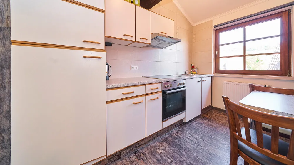 - Zwei-Zimmer-Apartment mit Badezimmer und Küche (Fliesen-, Vinyl- und Teppichboden)