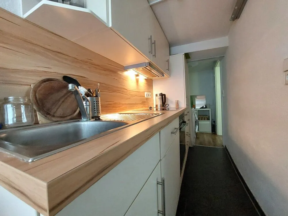Diese attraktive Einheit bietet auf ca. 40 m² Wohnfläche ein gemütliches Ambiente mit gepflegten Details. Der Boden ist mit Laminat belegt und die verputzten Wände ergänzen sich hervorragend mit den weißen Sprossenfenstern, die zum heimeligen Wohngefühl beitragen. Die charmante Küchenzeile ist ausgestattet mit einem Herd, einer Dunstabzugshaube, einer Spülmaschine, einem Kühlschrank und einem Waschmaschinenanschluss – ideal für einen kleinen Haushalt.