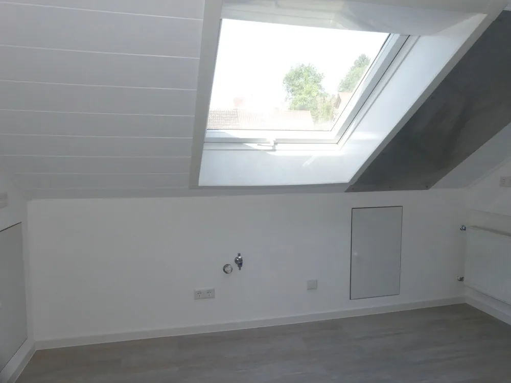 Die Dachgeschosswohnung bietet zwei große und helle Zimmer mit ca. 18 m² und 27 m² Fläche. Sie lassen sich flexibel als Wohn-, Schlaf- oder Arbeitszimmer gestalten. Ein zusätzlicher Abstellraum sorgt für praktischen Stauraum im Alltag. Die Räume wurden im Zuge der Modernisierung mit neuen Boden- und Wandbelägen ausgestattet, ebenso wurden teilweise neue Fenster eingebaut.