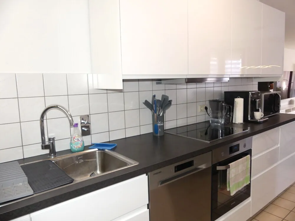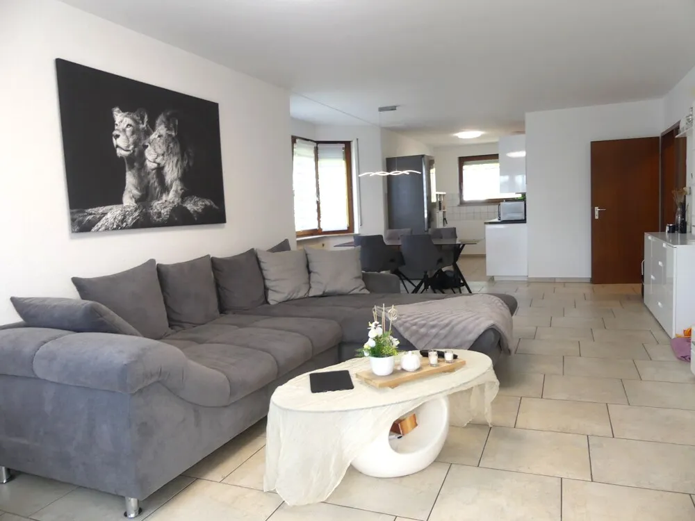 Der großzügige Wohn-Essbereich liegt angrenzend an der offenen und modernen Einbauküche. Diese kann vom neuen Mieter erworben werden.
