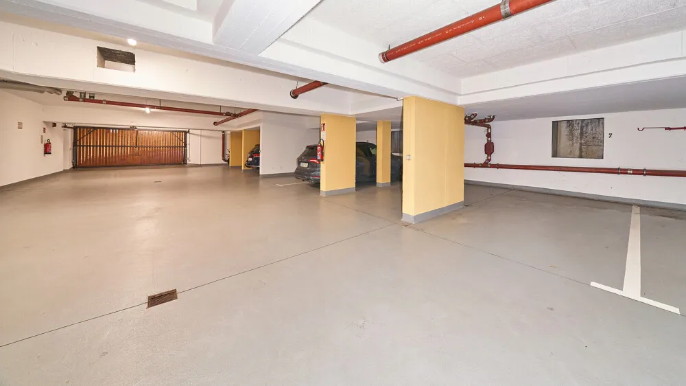 Zur Wohnung gehören außerdem ein Abstellraum im Keller sowie ein Tiefgaragen-Stellplatz (60,- €/Monat)